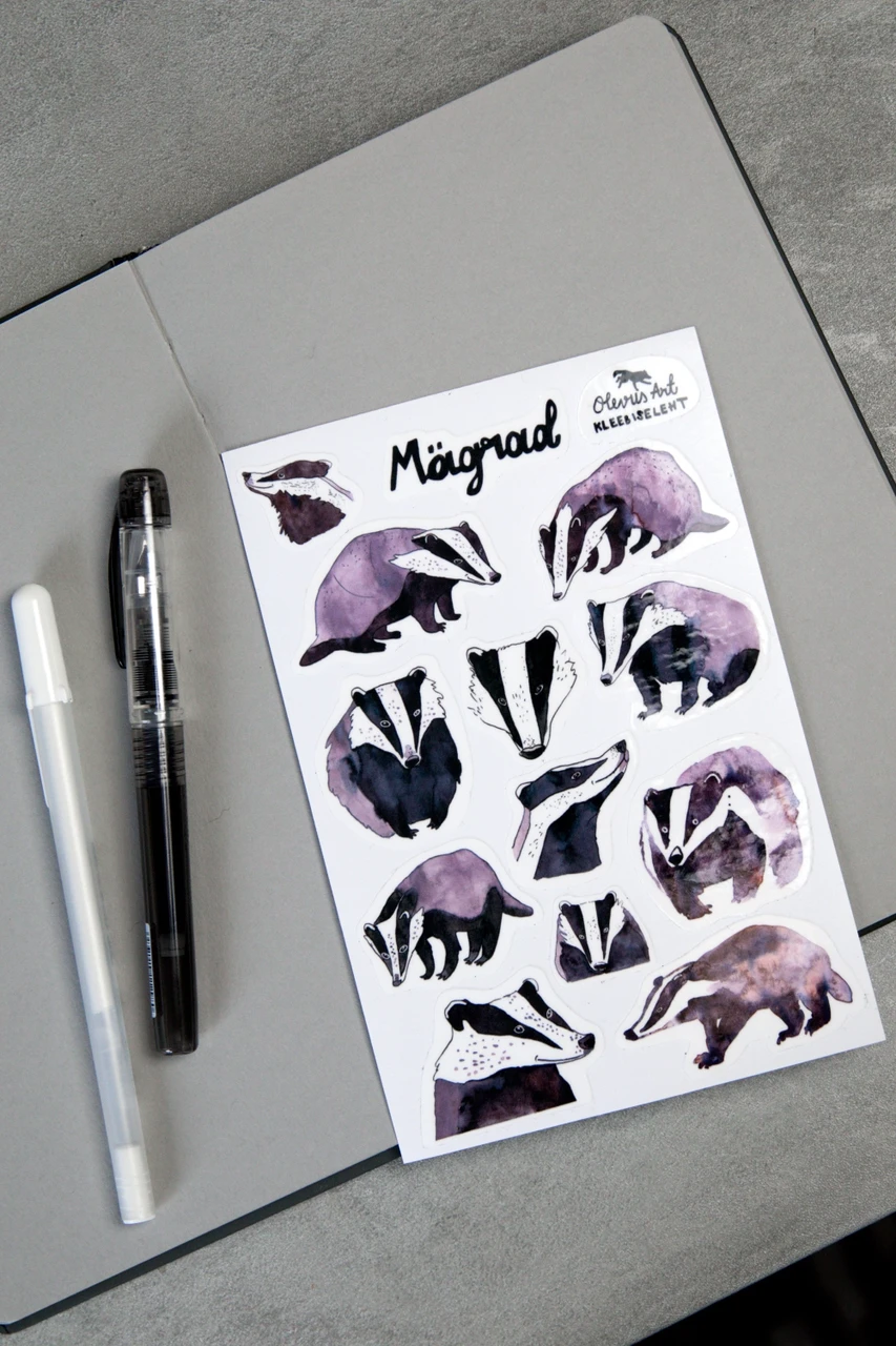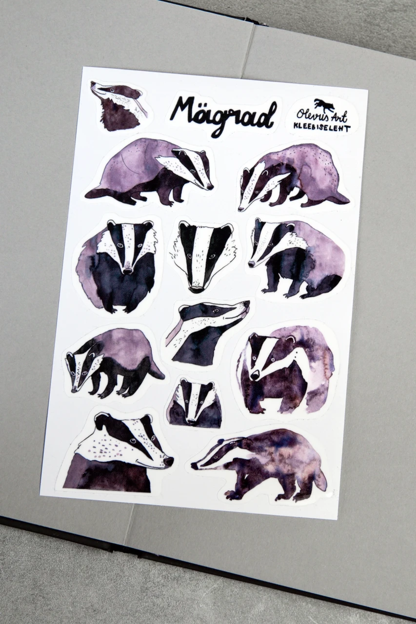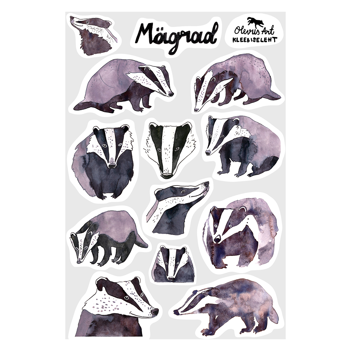 There are 12 stickers with painterly drawn badgers on the sheet and the word "Mägrad" (badgers in Estonian) is a sticker too :)