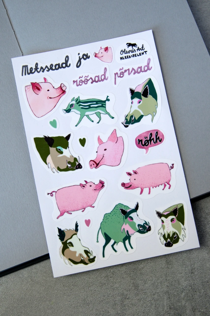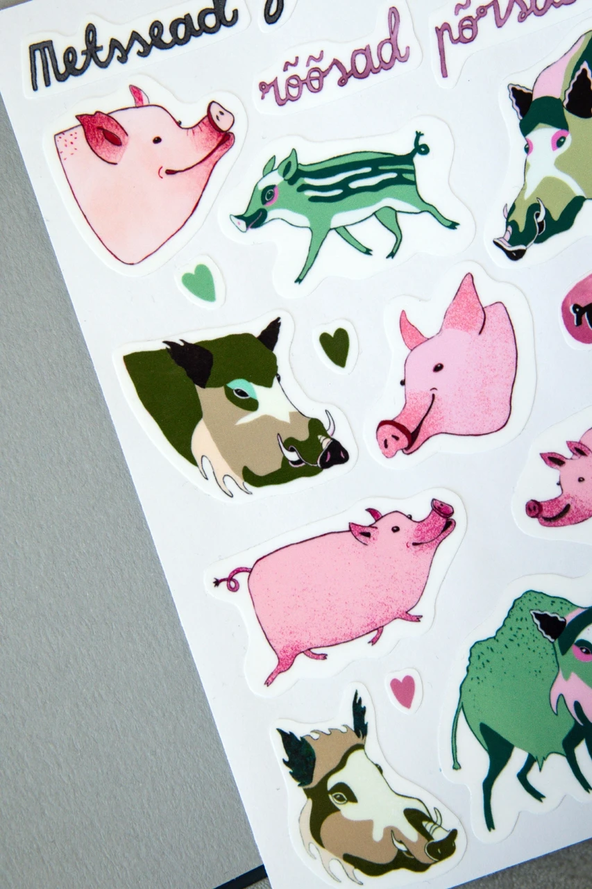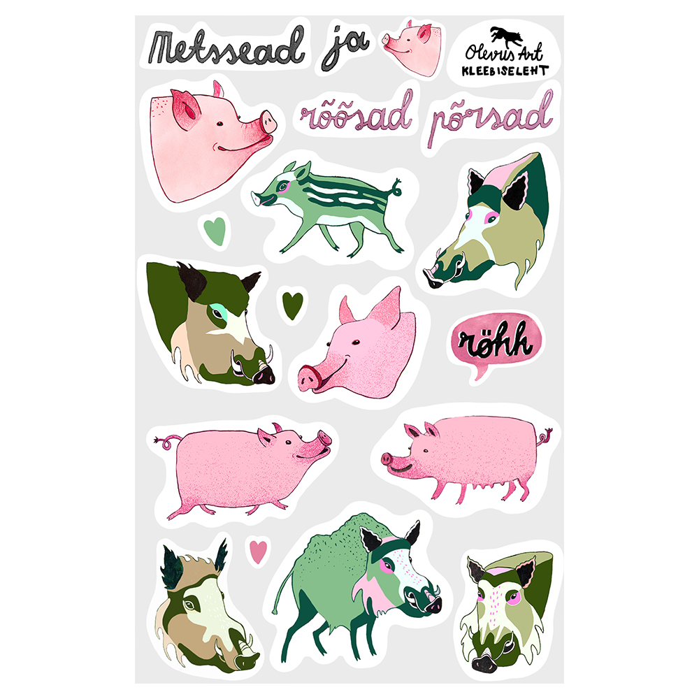 These are boar and piggy stickers drawn by Olevus Art : ) The words "Metssead ja rõõsad põrsad" (wild boars and pink piggies in Estonian) are stickers too.