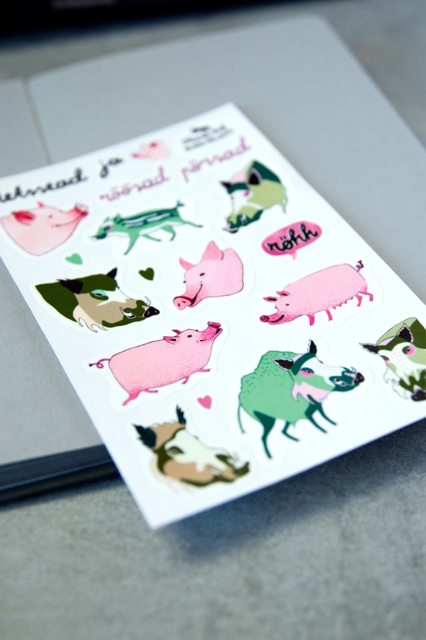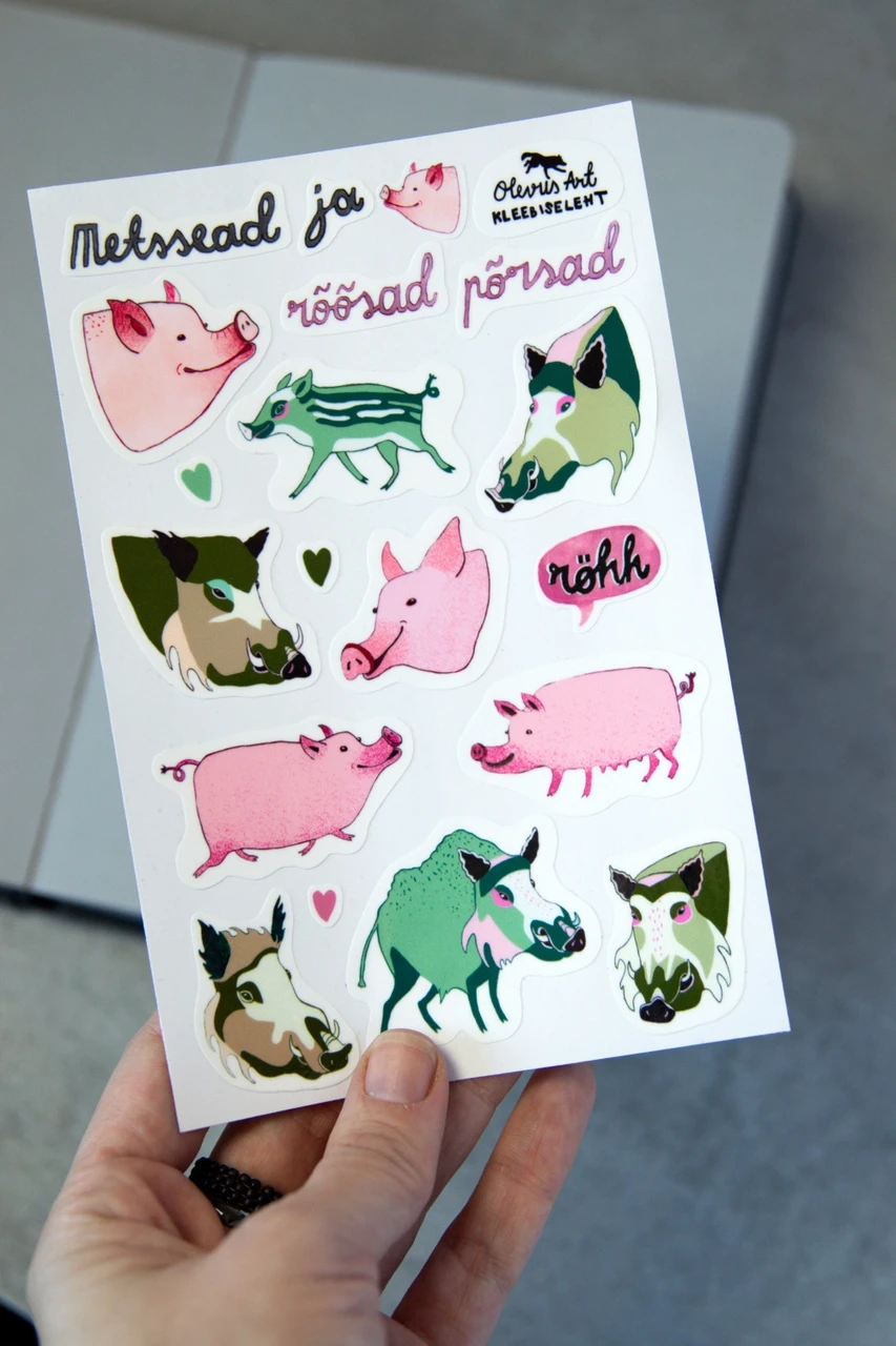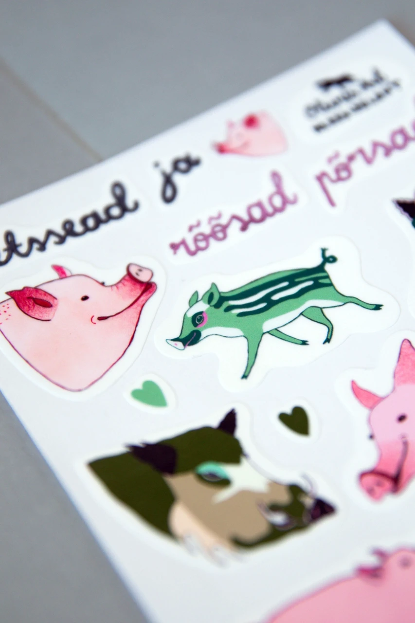 These are boar and piggy stickers drawn by Olevus Art : ) The words "Metssead ja rõõsad põrsad" (wild boars and pink piggies in Estonian) are stickers too.