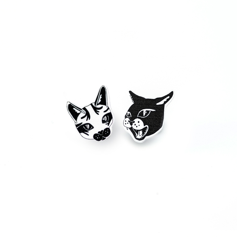 Postkinnitusega pisikesed kassid on joonistusega käsitööna valminud kõrvarõngad.