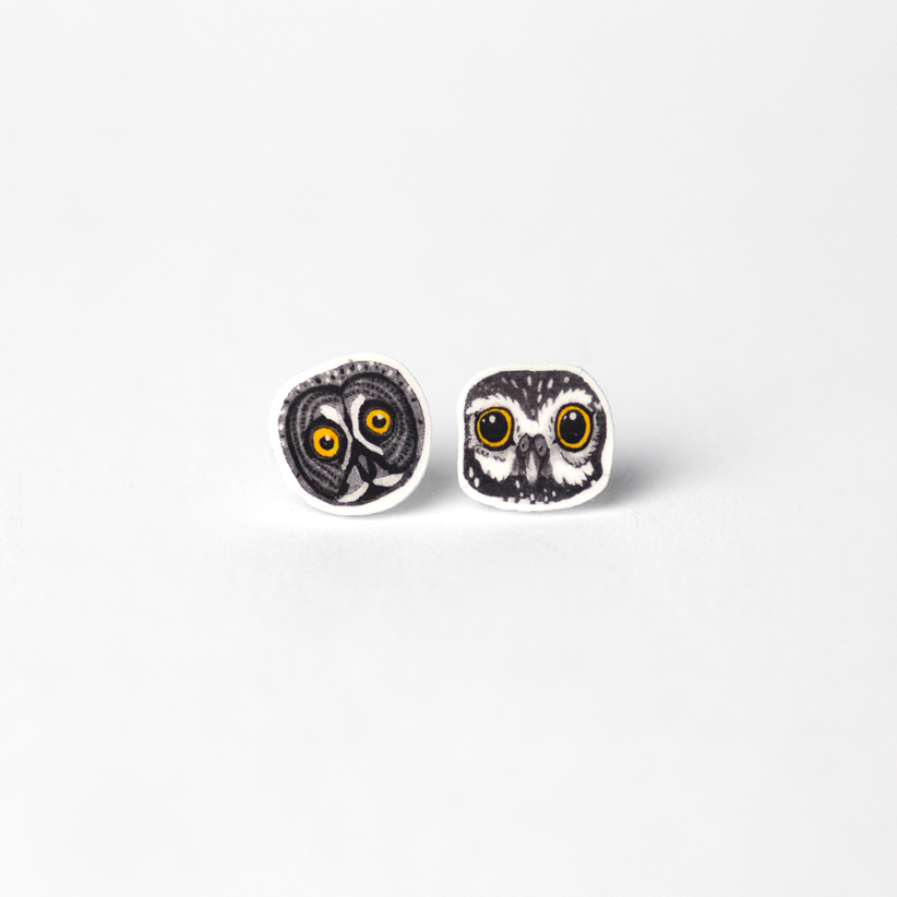 Öökullid on joonistustega käsitööna valminud kõrvarõngad. Paari disainid on erinevad, aga mõlemad linnukesed on uudishimulikud.