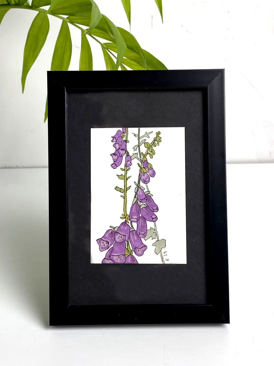 "Õitsev 2" on atmosfääriline pisike taimejoonistus mustas lihtsas raamis, mis on kohe valmis koha võtma interjööris, tekitades loodetavasti toredat meeleolu :) Seisab jala abil või on valmis ka riputamiseks seinale.
