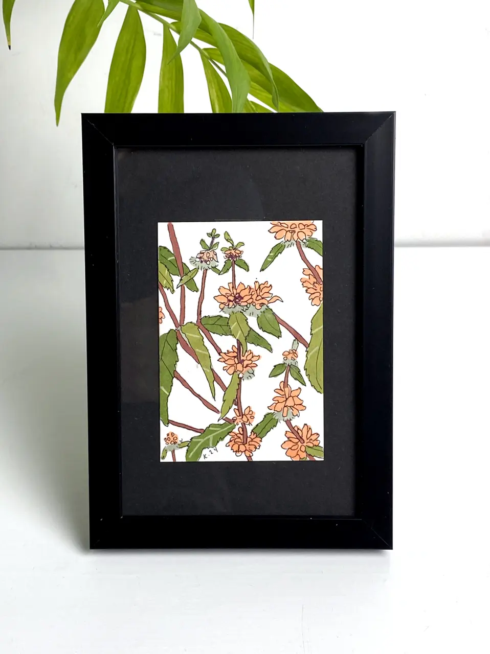 "Blossoming 4" is an atmospheric little plant drawing in a simple black frame, which is ready to take its place in your interior, hopefully creating a nice mood :)