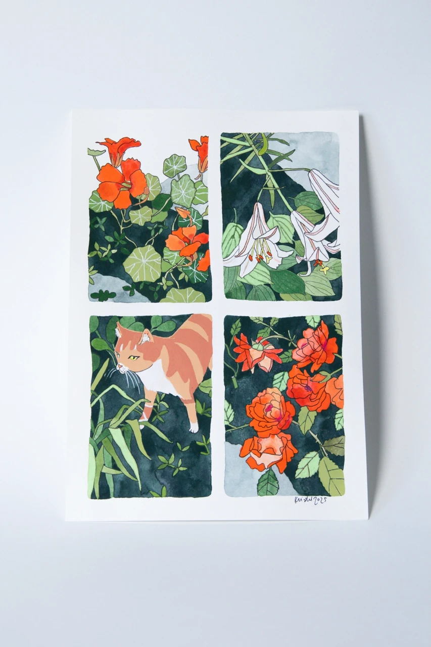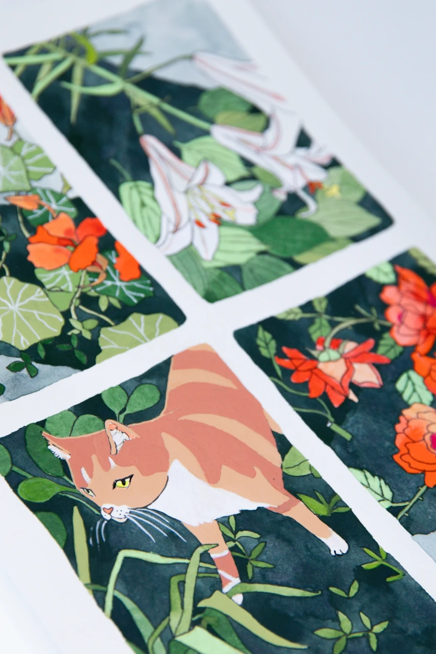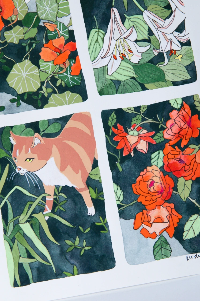 Original drawing "Four Blossoming Moments from Botanic Garden".