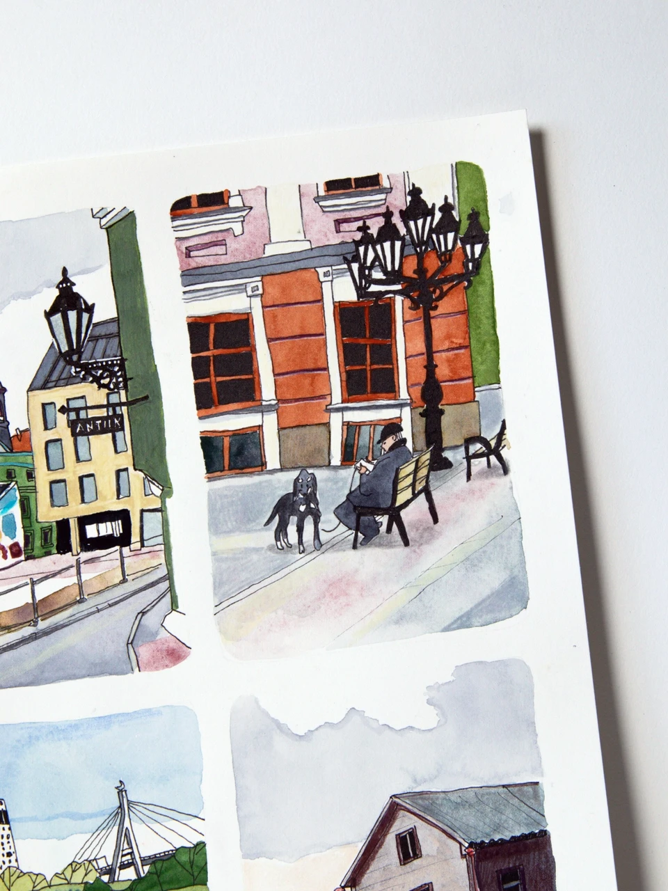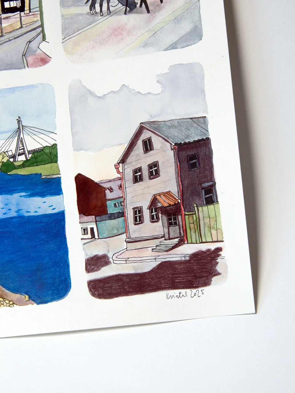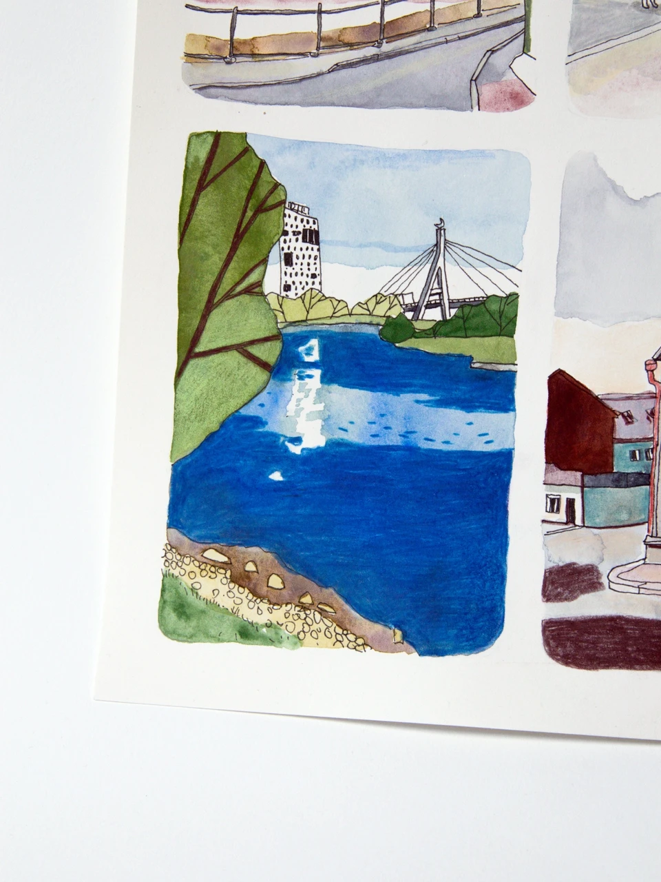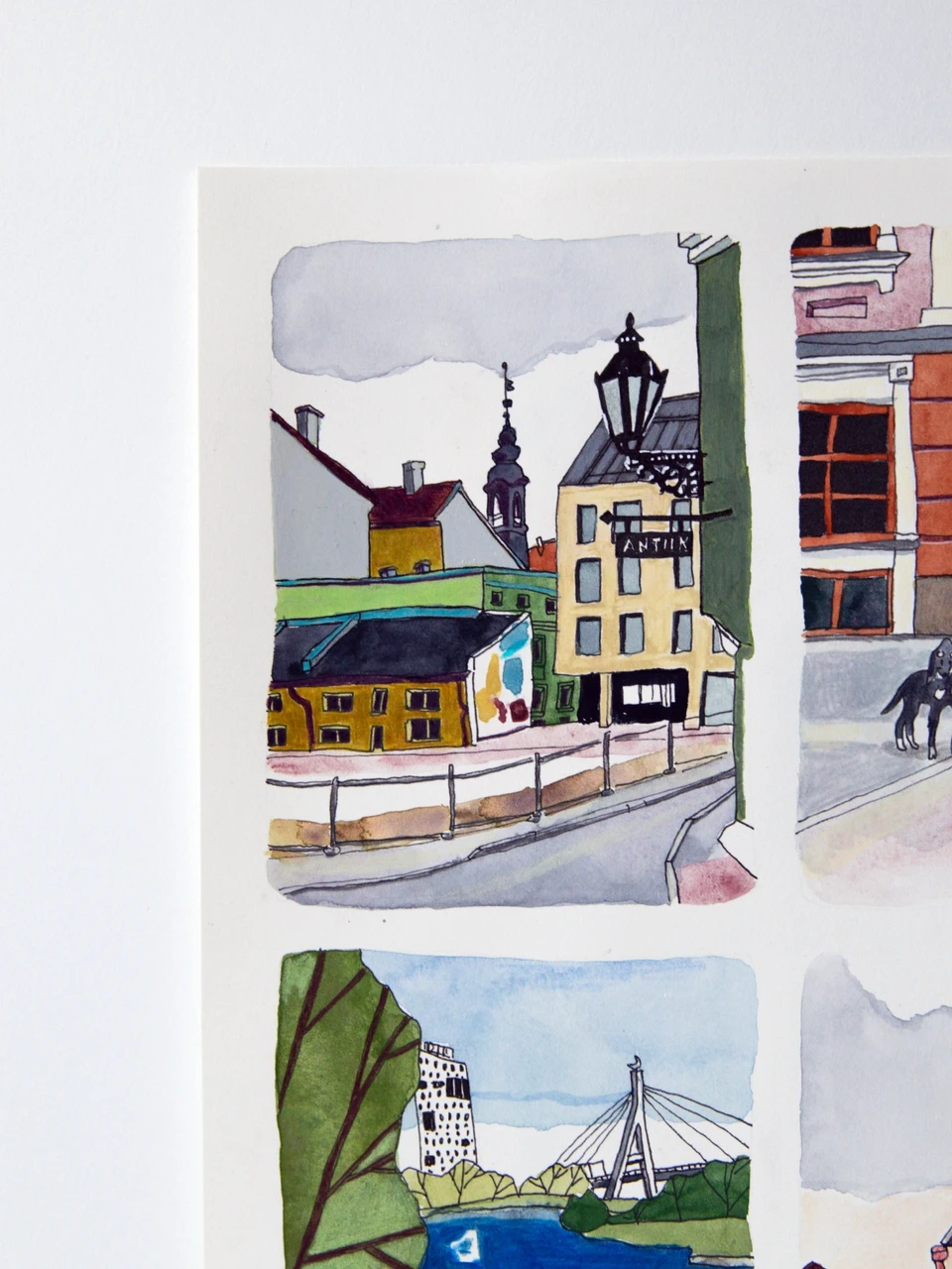 The moments drawn are from the centre of Tartu, a moment from the riverside and a moment from Ülejõe :)