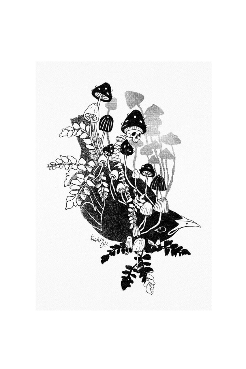 A4 formaadis (210 x 297 mm) print joonistusest "Metsik lind".