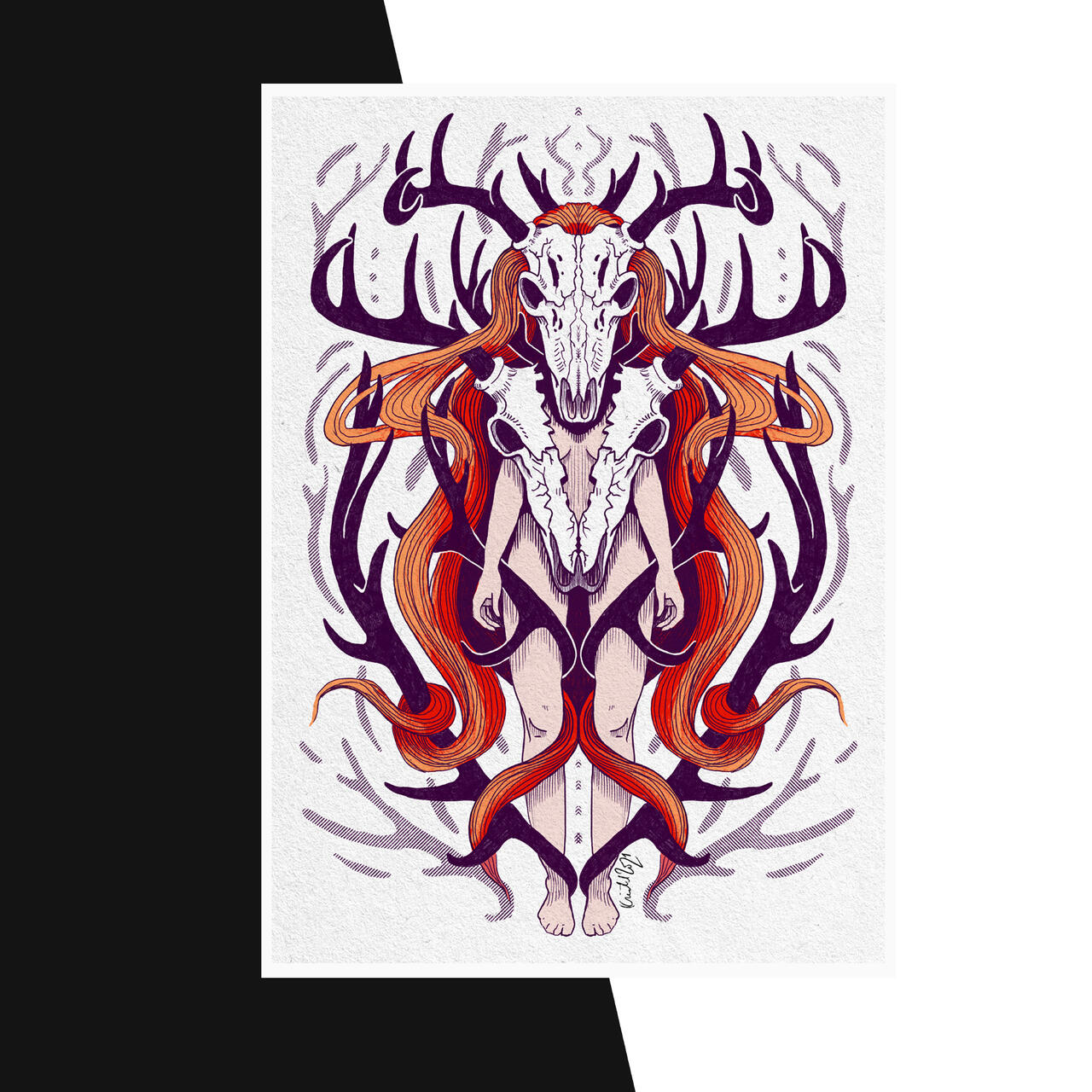 Symmetrophobia (meaning: fear of symmetry) is a print of a bit spooky drawing.